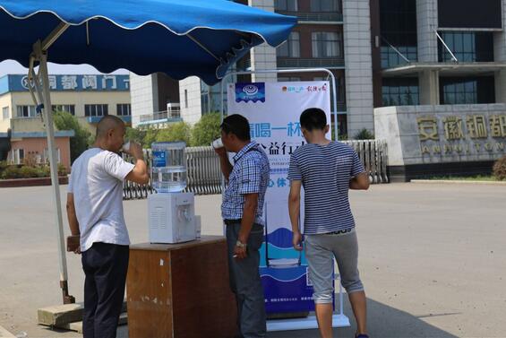 他們用汗水,方便了市民的生活、他們用汗水,洗去了城市的塵埃,因為要堅守崗位,甚至有時無法在口渴時喝一杯涼水,也無法在酷暑難耐時稍作休息。炎炎夏日,一杯清水對坐在辦公室的市民來說,是微不足道的,但是對高溫酷暑下的為戶外高溫作業人員來說,喝一杯清水在繁忙的一天中卻顯得如此奢侈。7月25日,共青團銅陵市委、銅陵日報社聯合發起"請喝一杯水"愛心公益活動后,我公司立即響應號召,在我公司大門口設立愛心崗亭"愛心休息站",為在烈日下工作的人們提供夏季的一絲涼意。