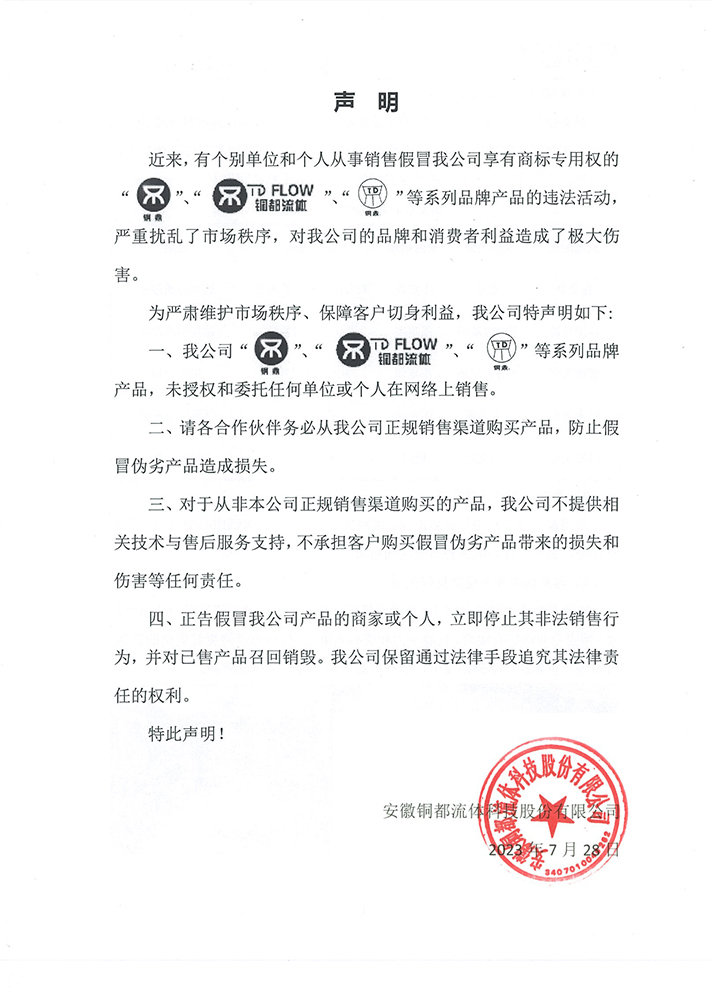 近日,銅陵市義安區人民法院對一起制售假冒“銅都流體”注冊商標罪案件進行判決,為商標權人維護了自身合法權益。