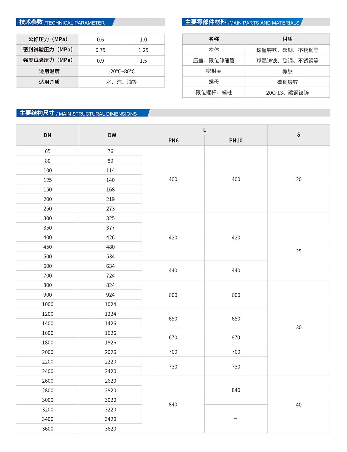 松套傳力接頭是由松套伸縮接頭和短管法蘭、傳力螺桿等構件組成。
