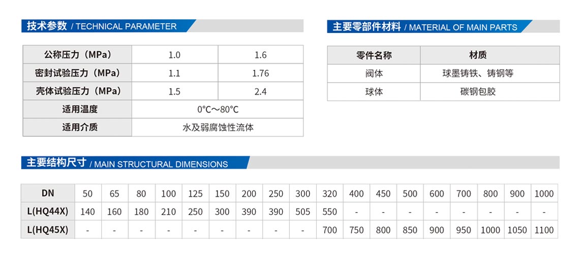 1、該閥為國內先進的新型止回閥,采用橡膠球密封結構設計。